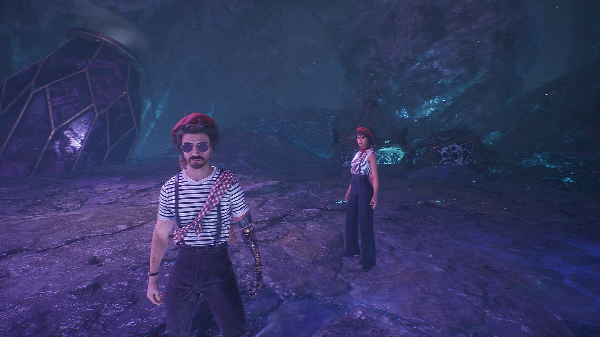 Sometimes you get stuck on the environment a little, hovering awkwardly on top of a rock for a few seconds, but it's largely not game-breaking. The idea of an entire world inspired by a painting creates a design aesthetic that is painfully gorgeous, juxtaposed against some really cruel death and violence. There's some real French art film moments to be found here. There's times where the game makes a decision to change to a 4:3 aspect ratio and switch to black-and-white, really trying to make you see and feel something different. I don't often get impressed by graphics at this point since I don't think there's much farther game graphics can improve in a way that would make my jaw drop. However, I did find myself impressed with this game, where it let me put my characters in goofy little French outfits and swimsuits, and then just walk into a cutscene and have it play at incredibly high fidelity that to me is virtually indistinguishable from a pre-rendered cutscene.